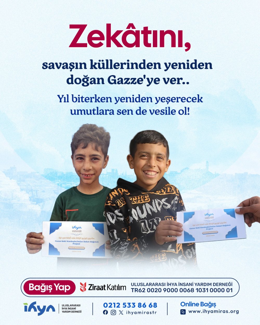 Uluslararası İhya İnsani Yardım Derneği, zekâtınızı Gazze’deki gerçek ihtiyaç sahiplerine,